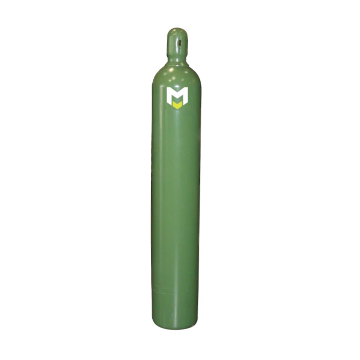 High pressure steel cylinders are available in 125 cu ft (size M) or 250 cu ft (size H) and include a CGA540 valve, fitted neck, and cylinder cap