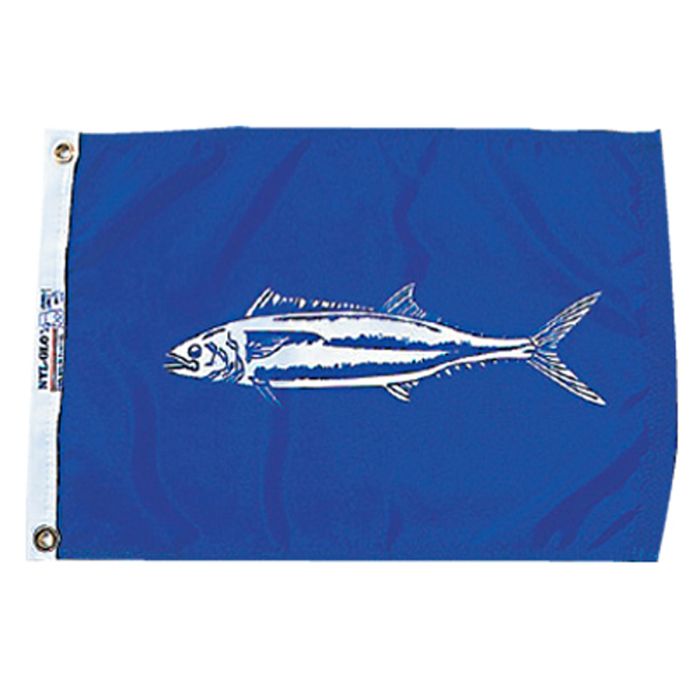 Fish flags. 100% nylon. Use indoors and out. Canvas heading and brass grommets. Clamshell packaging