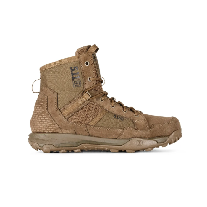 The 5.11® A/T 6 Non-Zip Boots are designed to elevate your performance and comfort, whether you're carrying heavy weight on long shifts or navigating challenging terrains. These boots are meticulously crafted to provide unparalleled support and durability, ensuring that you can face any challenge head-on. The water-resistant suede upper and high abrasion air mesh nylon construction make these boots the ideal choice for anyone seeking a reliable and high-performance footwear solution.