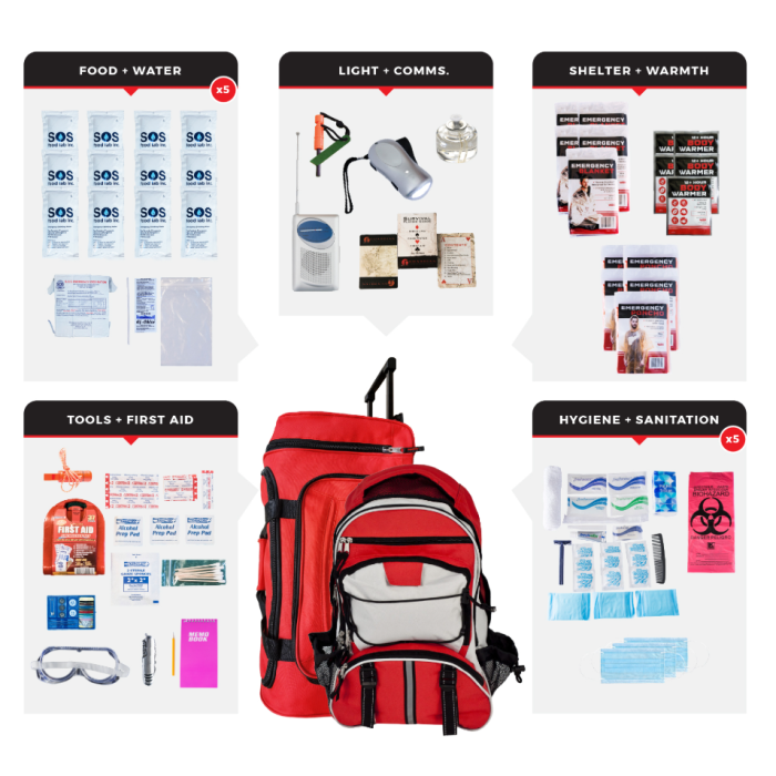 5 Person Essential Survival Kit, Rolling Bag, Backpack