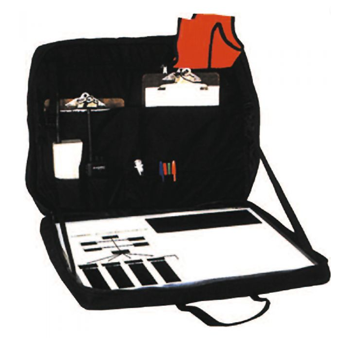 The case is made from padded Ballistics nylon and includes pockets for radios, cell phones, clipboards, command vests, and writing utensils.