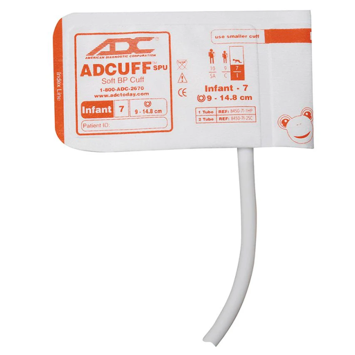 The ADC Adcuff SPU Cuff and Bladder with One Tube is made from a woven polyester fabric, is exceptionally soft and comfortable, and features the meticulous marking system that make ADC cuffs the most accurate and easy-to-use cuffs available today.