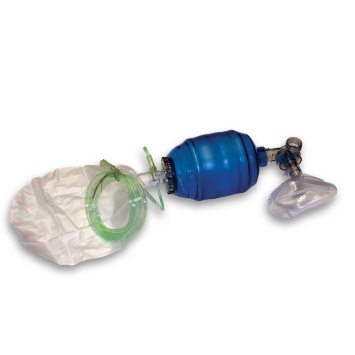 Collapsible, disposable. Comes with detachable reservoir bag, oxygen supply tubing and face mask.