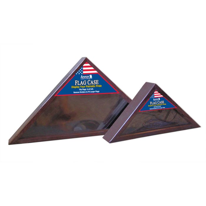 One of the rare cases available with an option for display of smaller flag sizes, these attractive wooden cases have a rich cherry finish and a plexiglass front. the large case holds 5' x 91/2' flags, sold separately.
