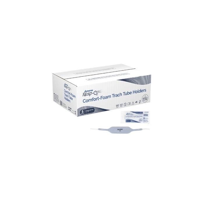 The Dynarex Resp-O2 Comfort Foam Trach Tube Holder is designed to hold a tracheostomy tube securely in place to help stabilize the tube and ensure uninterrupted airflow. The Trach Tube Holder fastens securely with hook-and-loop closures and features soft, Comfort-Foam padding to help keep skin dry and promote optimal patient comfort.