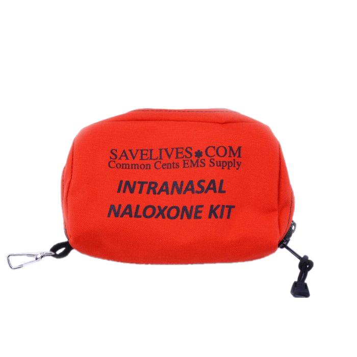 Double Zipper, Nylon case. Orange. Includes a clear pocket to the exterior to view expiration dates and a disposable breakaway tag. Bag holds one or two Naloxone Kits (Sold Separately)