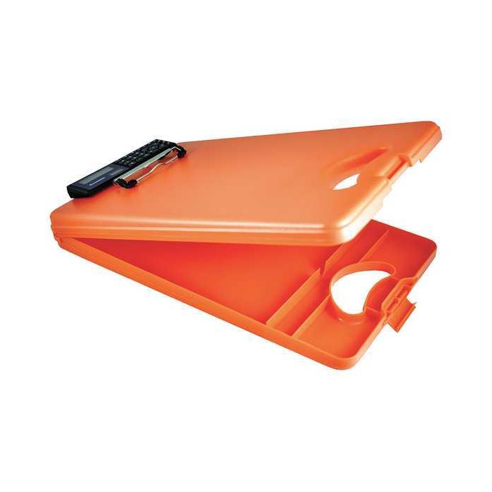 Portable Storage Clipboard, File Size Letter, Clip Type Wire Spring, Clip Capacity 1/2 In., Opening Type Bottom, Color Orange, Plastic, Width 10 In., Height 16-1/16 In., Sheet Size 8-1/2 x 11 In., Storage Capacity 1 In., Includes Calculator