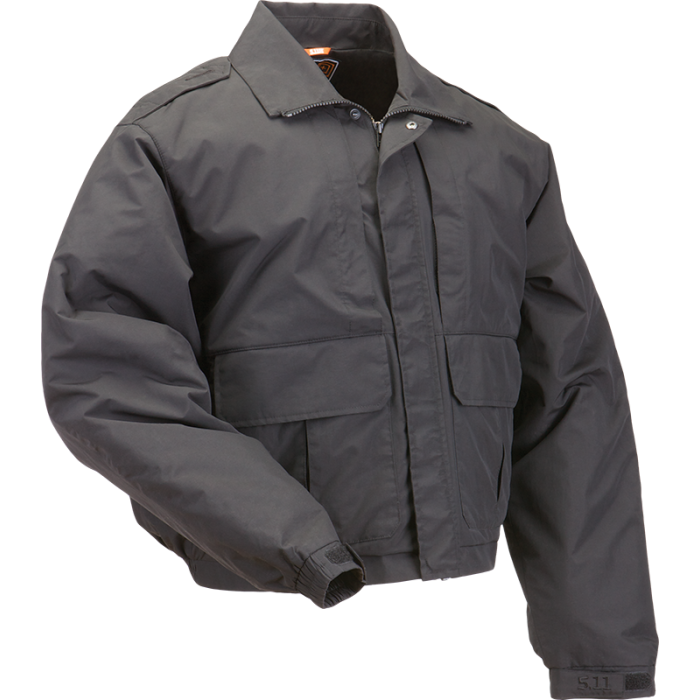 MN WOVEN 100% NYLON W/R JACKET Featuring a zip-out quilted liner for modular weather protection, the 5.11® Double Duty Police Jacket is an ideal patrol solution for a wide range of climates. A wind and water repellant nylon shell houses the breathable polyester liner, offering lasting warmth that won't heat you up during periods of high activity. Dual bellowed duty pockets are TacTec System™ compatible for customized storage, while twin handwarmer pockets are installed underneath. Our trademark Hidden Document Pockets at the chest offer additional covert storage, a bi-swing back ensures unhindered movement, and underarm zippers offer increased ventilation when the weather warms up.