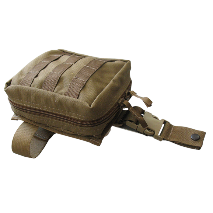 The TacMed™ Convertible Drop Leg Pouch provides the medic/operator with maximum flexibility without compromising the ability to provide on target care. This pouch can be worn on the leg or attached to a MOLLE style vest depending on the users’ preference. This pouch is offered stocked based on different levels of medical capabilities. All kits can also be custom packed to meet your specific mission requirements.
