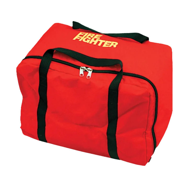 ECONO GEAR BAG. #198FF XL Designed to hold turnout coat, pants, helmet, boots, and miscellaneous equipment. A 1 1/2” web handle supports the weight of the bag’s contents. This bag is 25% larger than the average gear bag on the market. Made of heavy Cordura® nylon with a urethane coated back, it has a #10YKK self-repairing nylon coil zipper. The logo Firefighter is in gold print. It is available in red and weighs 30 oz. There is 5,200 cubic inches and the overall dimensions are 24”L” x 16”W x 13 1/2H”.