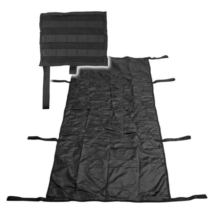 The Emergency Evacuation Litter (EEL) is a lightweight, compact solution equipping personnel to efficiently perform rapid casualty evacuation. The EEL is a cost-effective casualty evacuation platform that features a full-size, durable, lightweight nylon construction with a load carriage capacity of 700 lb. It has eight easy to grasp carry handles spaced appropriately on the litter to accommodate various size rescue teams. A streamlined storage pouch that attaches to a tactical-type vest via MOLLE/PALS-style connectors is included with the litter. When mounted between other mission critical tactical equipment such as ammo/chest pouches or on the small of the back, the quick deploy handle easily allows the EEL to be removed from its storage pouch to be put into use. The EEL requires minimal cube space on the limited area available on the assault vest, making it the ideal platform for tactical casualty evacuation.