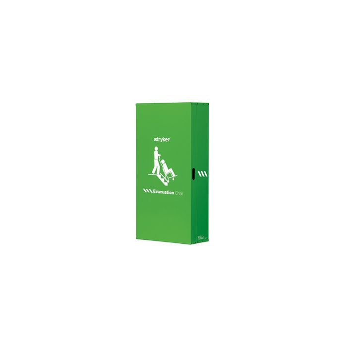 The Stryker Evacuation Chair Cabinet provides safe storage and high- visibility, immediate access to the Stryker Evacuation Chair. The Stryker Evacuation Chair is used to evacuate non-ambulatory patients from any multistory building using the stairway.