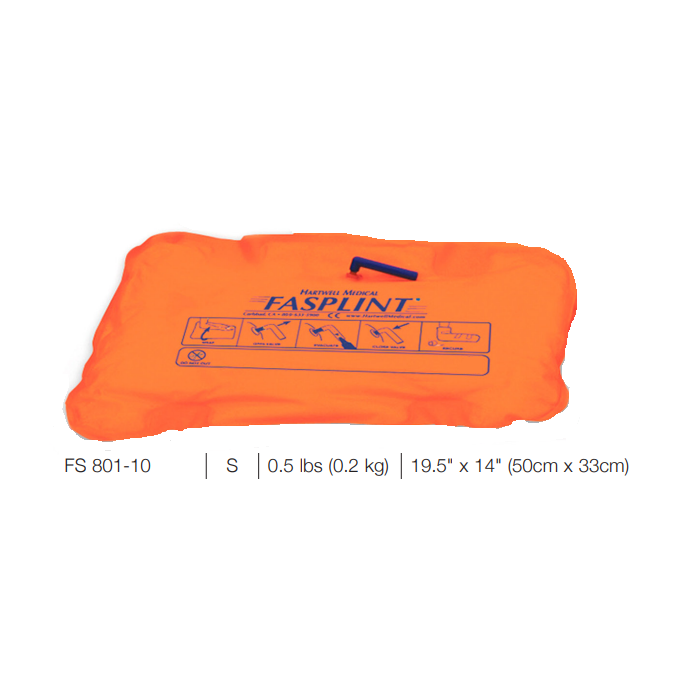 The FASPLINT uses vacuum technology just like our EVAC-U-SPLINT extremity splints. From dislocated shoulders to angulated wrist fractures, simply grab your vacuum splint, place it around the injured area, evacuate the air, and you're done! And if equipment retrieval is a major factor facing your department, then the FASPLINT is ideal. With as little as five uses before being discarded, the cost is less than $4.95 per use for the medium-size FASPLINT.