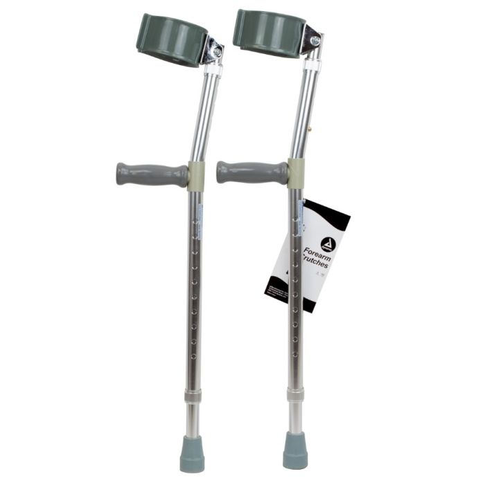 Dynarex Forearm Crutches are durable mobility aids designed for a wide range of users. The crutches are ideal for long-term use. The crutches feature sturdy arm supports, comfortable hand grips, and tool-free height adjustment for optimal user comfort. Sturdy aluminum construction provides a sturdy mobility option for individuals who range in height from 5’0”-6’2”. Also available in sizes Youth and Tall.