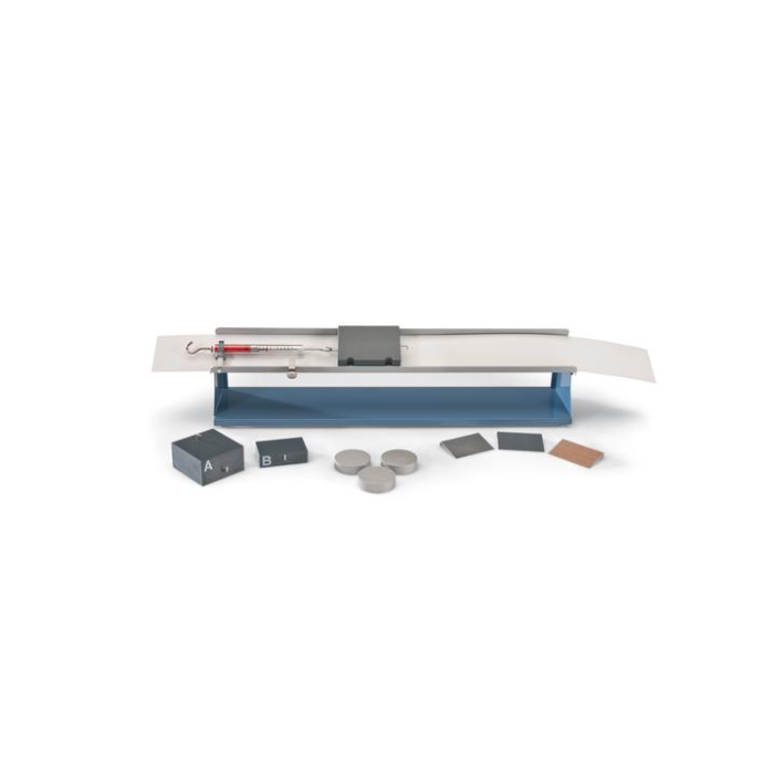 The friction measuring device makes it possible to measure the static and kinetic friction between two surfaces depending on the contact area, the force applied or the combination of materials in contact.