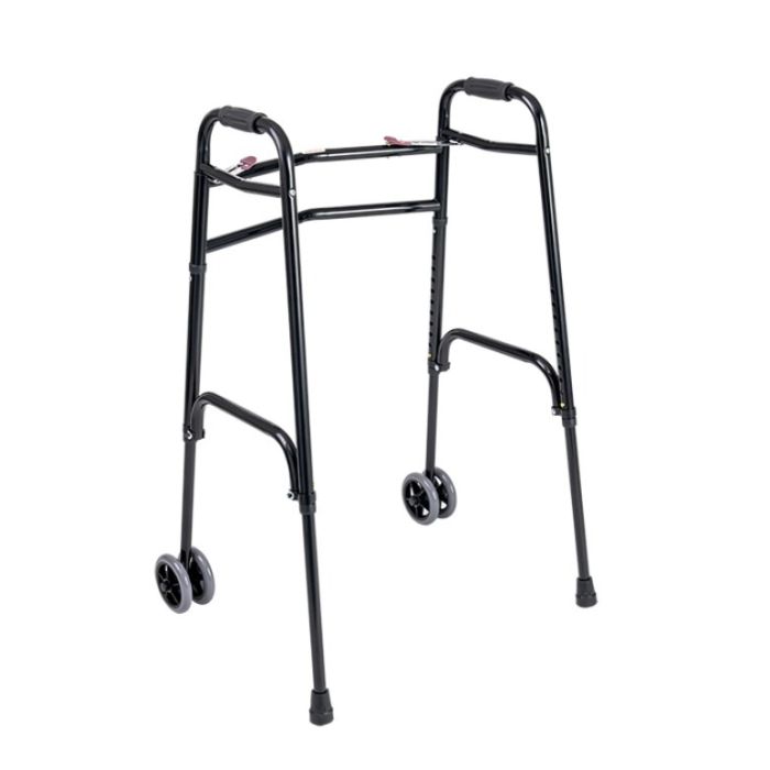 The Dynarex Bari+Max Heavy Duty Steel Walker is constructed with a sturdy steel frame to provide optimal support and reliability. The Walker’s extra-wide frame provides added comfort for larger users. The easy-to-use push button mechanism allows for convenient opening and closing with fingers or palms. The Walker features tool-free push-button height adjustment for easy customization. This dual-purpose Walker can be used as a standard walker or rolling walker.