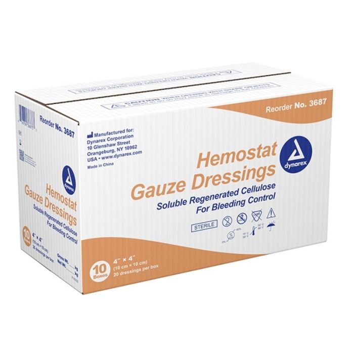 Hemostat Gauze Dressing, 4" x 4", 10/20/cs