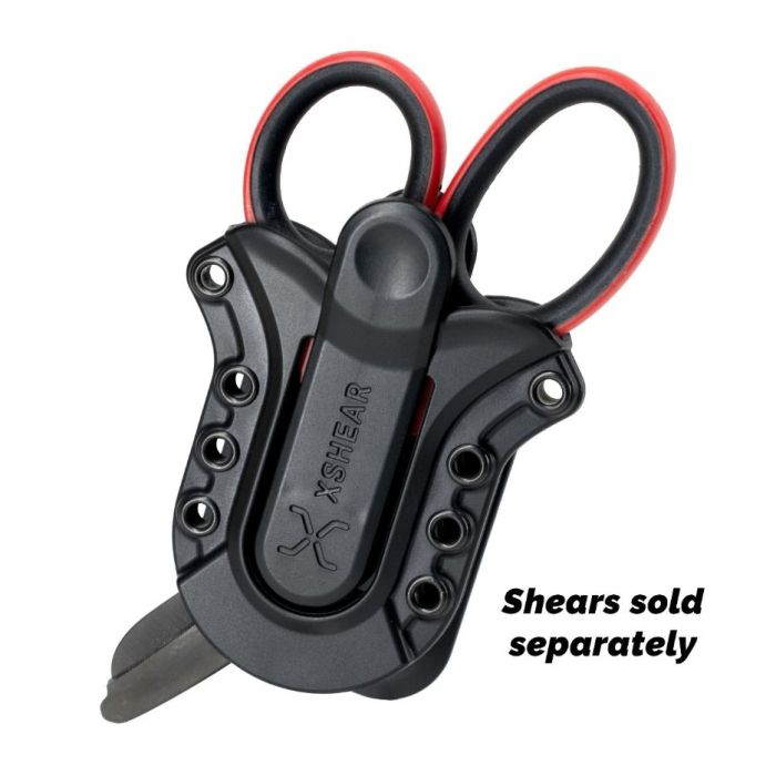 The XSHEAR® Heavy Duty Trauma Shears Tactical Holster securely holds the shears in place with a flex lock design which allows the shears to face either direction. The rugged injection molded ABS plastic is very durable and it's MOLLE compatibility as well as an adjustable belt clip offer flexible mounting options and orientation.