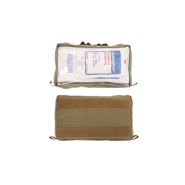 Large inside pocket with clear front designed for our #371 Tactical Medical Backpack.  Pouch is easily attached/removed using hook and loop velcro.  Measures 5"H x 10"W x 3"D.  Weight:  10 ozs.  Colors:  Coyote Tan or Black