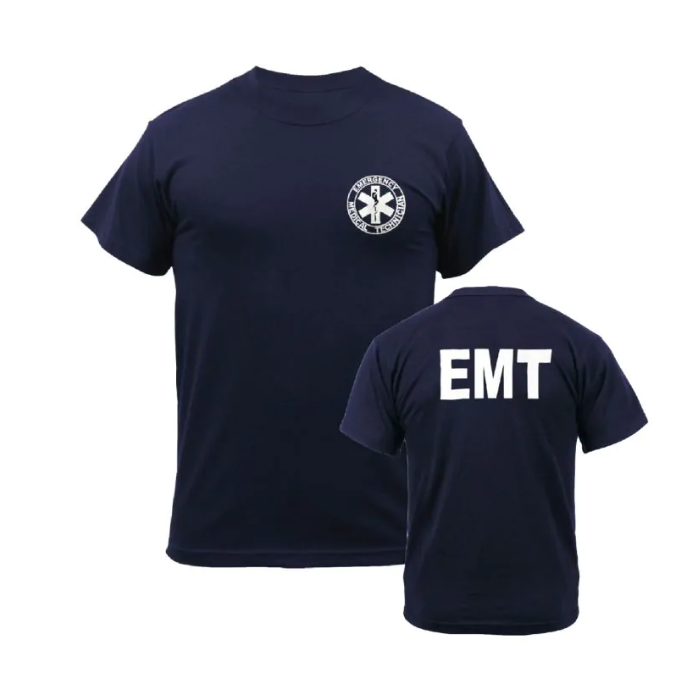 The Kemp USA EMT Shirts are 100% cotton for comfort. Printed EMT logo on the front and back. This item can also be custom imprinted with your organization's logo in small quantities. Multiple color custom logos also available. Available in Small (S,) Medium (M), Large (L), Extra Large (XL), Double Extra Large (XXL).