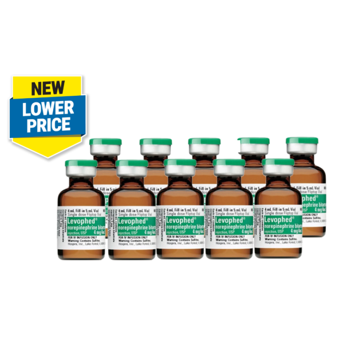 Norepinephrine Bitartrate 4MG/4mL Vial 10 per Box