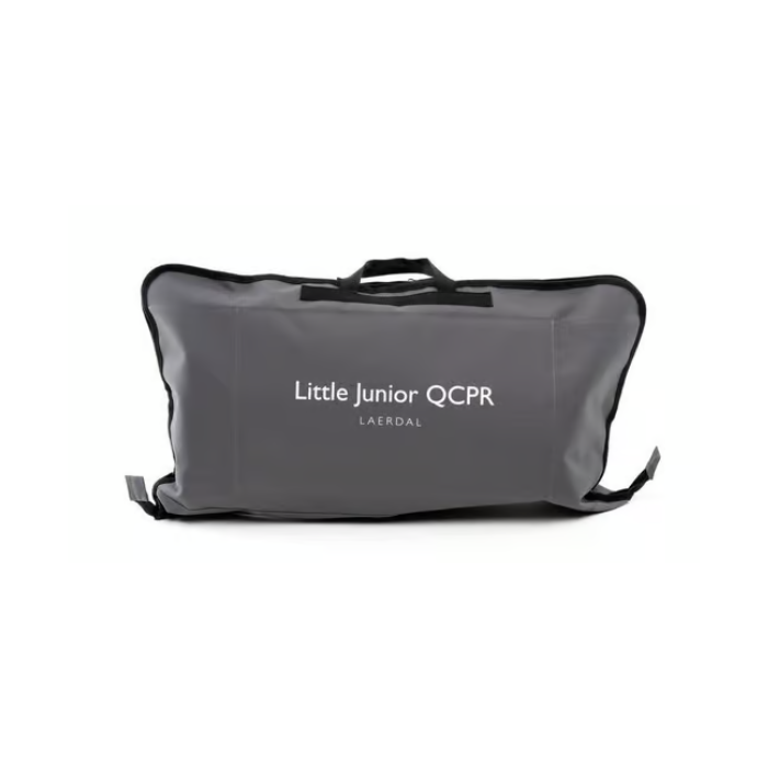 Soft carry case for carrying and storing one Little Junior QCPR manikin with room for consumables.
