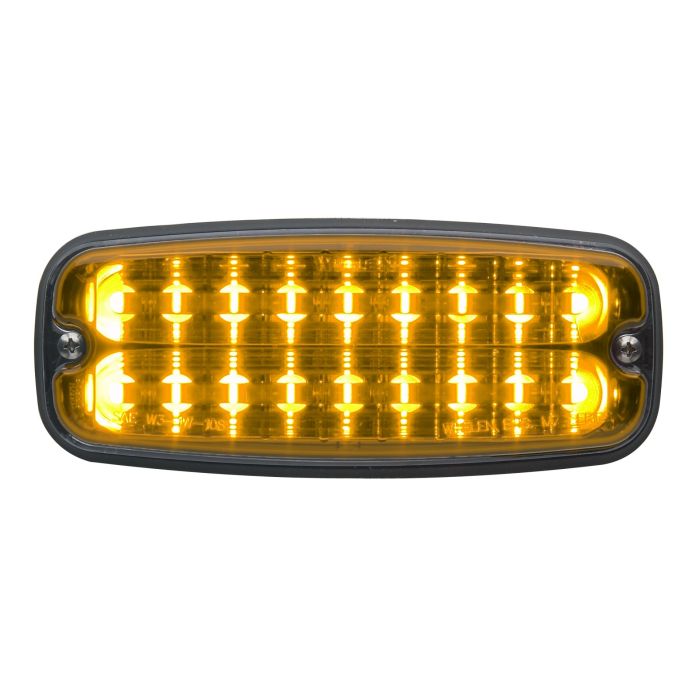 M6 Series Linear Super-LED Surface Mount , Color Outer Lens, Unless Specified. Optional Mounting Flanges Available. 6-3/4" Long x 4-5/16" High, Protrudes 1-3/8"., Red Warning, Red. Internal Flasher with Flash Patterns and Synchronize Feature