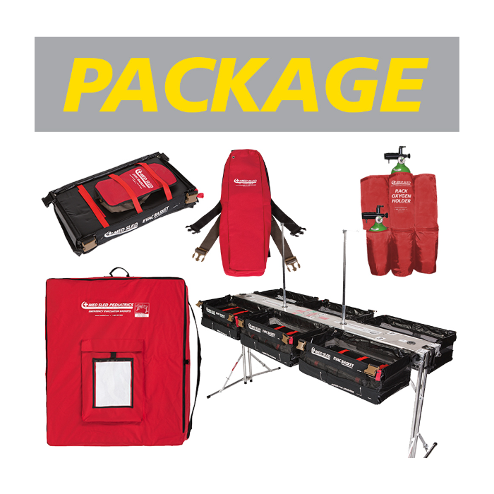 Med Sled Evacuation Basket Package comes with everything you may need to be evacuation ready for 6 Infants. This package comes with enough baskets for 6 infants to evacuate a building and attach to the included rack. Standard with (2) IV Poles for any needed medication. Also includes (2) O2 Holders that attach under the rack for convenience. The O2 Holders each hold (3) O2 tanks.