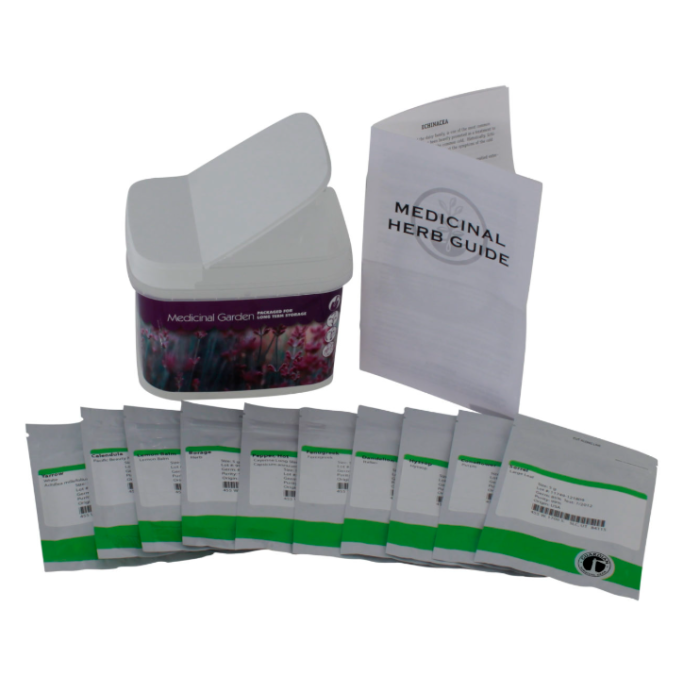 The Medicinal Garden Preparedness Garden has been designed to help people meet their health needs in hard times when the family garden may well become the only resource for home remedies. Each bucket contains 10 medicinal herb seed varieties which have been packaged for long-term storage.