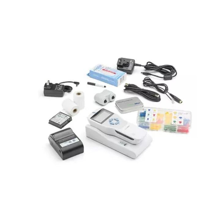 MicroTymp 4 Portable Tympanometer System with Printer, Includes MicroTymp 4 Hand Set, Charging Cradle, Power Supply, Ear Tip Starter Kit, 4-volume test cavity, Probe Tip Cleaning Kit, Serial Printer Cable, USB Data Cable, MPT-II Printer Kit, USB Thumb Drive with DFUs and TympView Software