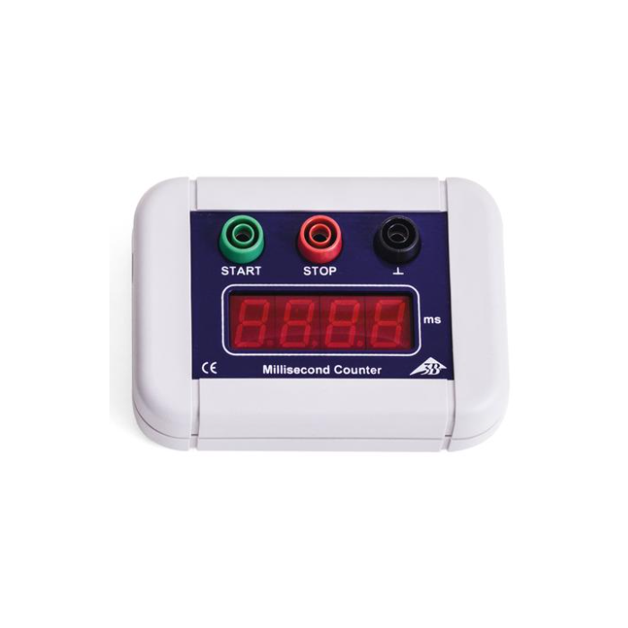 Inexpensive, compact counter for measuring milliseconds, e.g. in conjunction with the free-fall apparatus (U8400830). Each count is started and stopped by a signal at the input sockets. The device is automatically reset to zero each time it is restarted. Includes plug-in power supply.