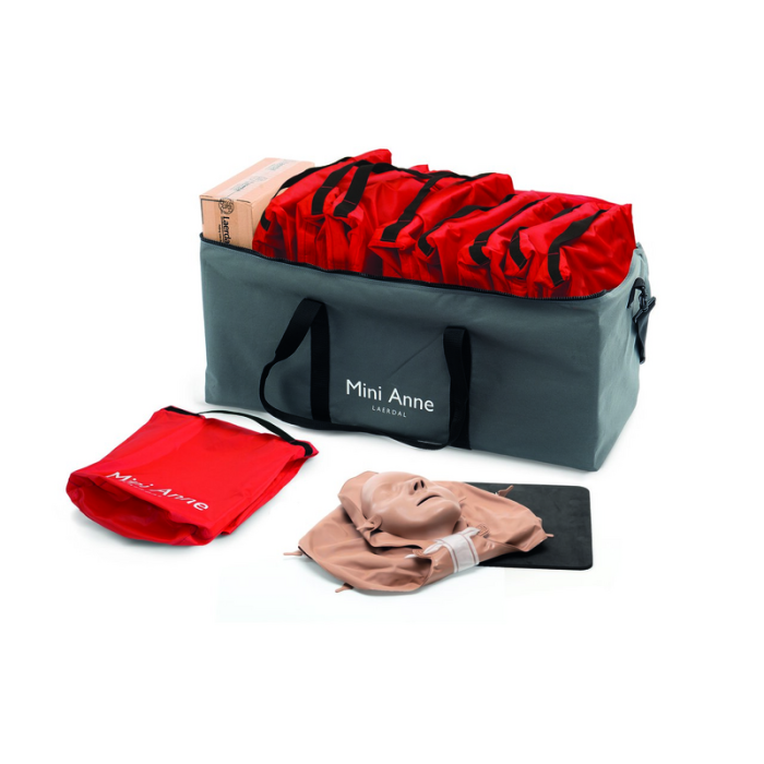 10 manikins, 10 kneel mats, 10 pump bags, 1 carry bag, 2 mesh collection bags, 10 face masks, 10 manikin wipes, 50 airways
