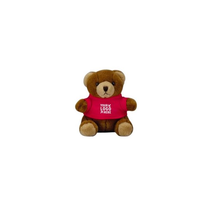 Plush 5" brown bear with shirt, embroidered eyes and nose. Option for shirt color.