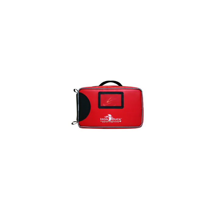 -Fold-out Red Page holds (Cardiac) med delivery and prefilled syringes on one side; protects vials in the clear vinyl pockets on the other.