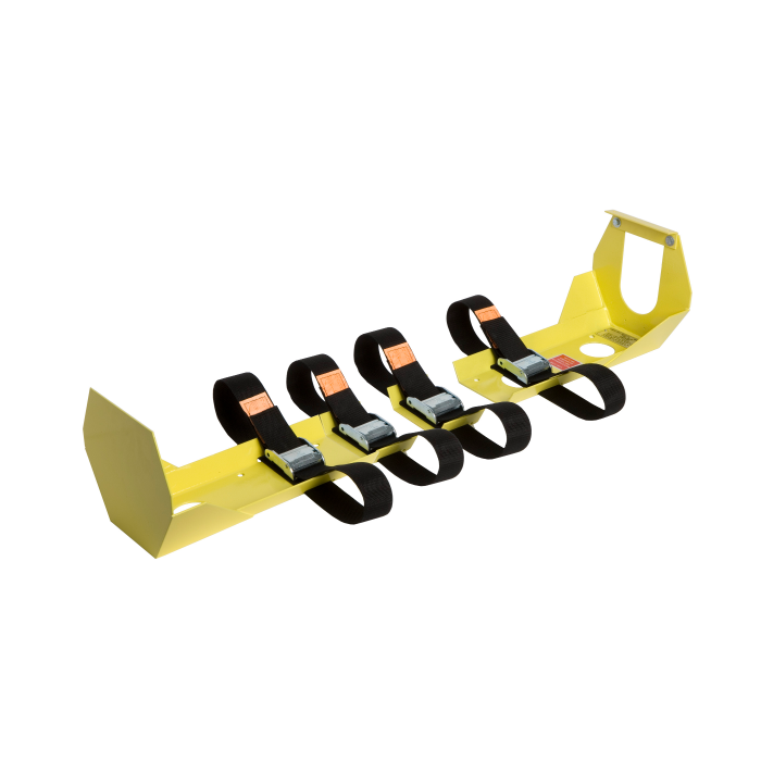 Bracket consists of two separate ends (base and retainer) and two strap support brackets. Base and retainer ends can be spaced apart to accommodate “M”, “G”, and “H” cylinders. Four heavy-duty straps hold cylinder securely in place. Straps adjust to cylinder diameters of 6-3/4″ to 9-1/4″