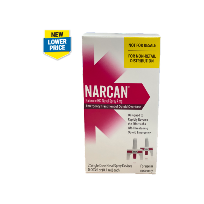 Narcan 4mg Nasal Spray which does not require assembly and delivers a consistent, measured dose when used as directed
