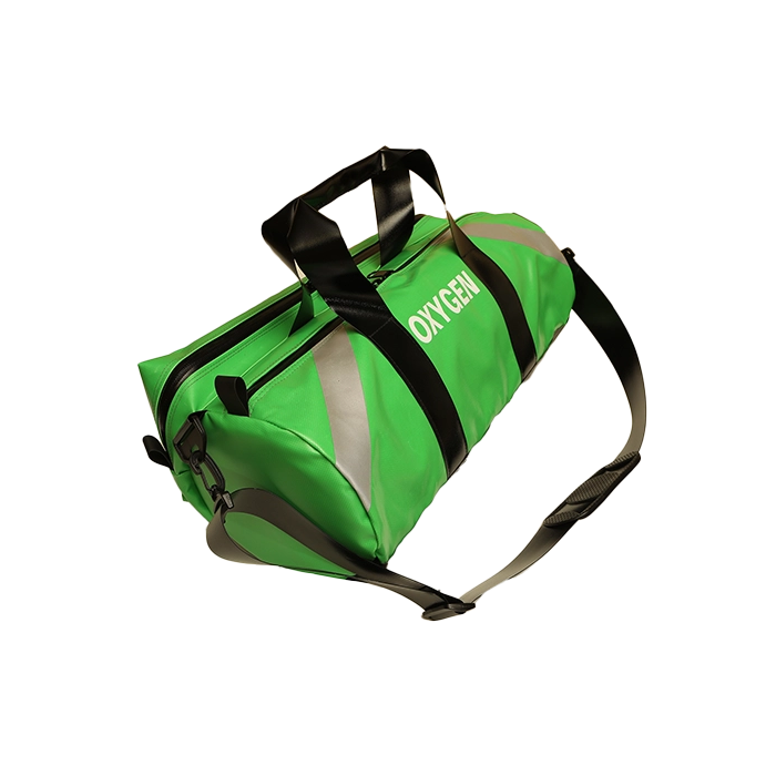 OXYGEN ROLL BAG WITH SIDE POCKET. #838GR-PKT. #838GR-PKT-V. The #838-PKT has the same features as a #838, but has an additional side pocket. This pocket measures 21”L X 2”W X 7”H, which is suitable for storage of items such as suction, oxygen supplies, tubing, etc. It weighs 33.6 oz. and the overall dimensions are 21”L x 11 1/2”W x 7”H. The vinyl bag is constructed of 18 oz. green vinyl and weighs 31 oz.