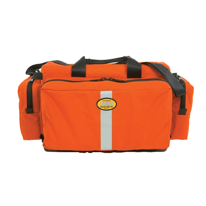 Intermediate Trauma Bags. R&B Fabrication’s Pacific Coast Series bags and packs are the highest quality line available. The outer shell is constructed of Cordura® nylon. The bag includes a fully padded insert with adjustable dividers to keep supplies organized and protected. The molded Tuff Bottom provides an almost indestructible base. Four outside pockets surround the main compartment. The front pocket contains numerous elastic loops and slot pockets. #10YKK heavy duty nylon zippers are used throughout the bag and are reversed to eliminate wear on the coil, prolonging the life of the strongest zipper on the market. It comes with an adjustable nylon shoulder strap. INTERMEDIATE II TRAUMA BAG. Available color choices are: red, royal blue and orange. It weighs 82 oz. and is 22”L x 14”W x 11”H.