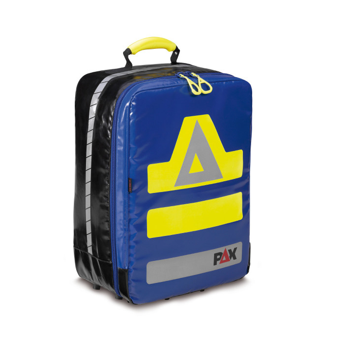 For the big PAX Rapid Response Team Backpack Large, too, we have focused on reflex material. To be able to disinfect the bag better, the reflex material is now affixed and the Velcro strips inside are welded on. It shines on five sides and is supported by our trademark, the PAX triangle, on the front and the back sides. If necessary, you can individualise your rucksack with the business card pocket on the back side. A robust bottom, durable stands and the easy-to-clean handle round off your PAX Rapid Response Team Backpack Large.