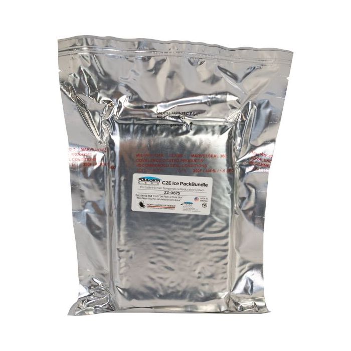 The Polar Skin™ C2E Ice Pack Bundle consists of four (4) specially-sized C.O.R.E™ Packs encased in Polar Skin™ Mini-Mesh sleeves saturated with ArcticAqua™. Unique to C2E C.O.R.E™ Packs, Polar Skin Mini-Mesh sleeves form an air-permeable layer that allows for the movement of air and water vapor necessary for convective and evaporative cooling. C2E C.O.R.E™ Packs are intended for use in the high blood flow regions of the groin and underarms.