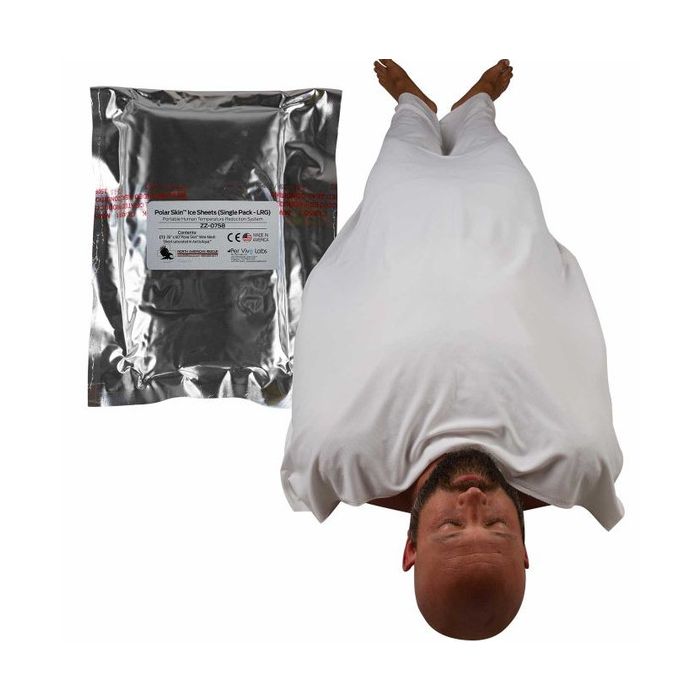 Constructed from Polar Skin Mini-Mesh™, Polar Skin Ice Sheets™ come saturated in ArcticAqua™ and react to an elevated body temperature to promote evaporative cooling. The Large, Single Pack comes with one 36 x 60 in. Polar Skin Ice Sheet™. All Polar Skin products are packaged in a rugged, durable foil pouch that prevents air or moisture transfer.