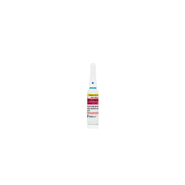 Practi-Fentanyl™ 2 mL Ampule for clinical training, accurately simulates (100 mcg/2 mL) of the synthetic opioid analgesic, fentanyl (Duragesic®). Each Practi-Fentanyl™ comes as a labeled 2 mL clear ampule containing distilled water. Make your lab meaningful, yet safe, with this look-a-like Practi-Fentanyl simulated medication.
