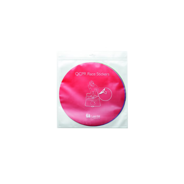 The QCPR Race Stickers are for use with the QCPR Race game in the QCPR Training app and QCPR Classroom app, to label each manikin with its designated color in the game.