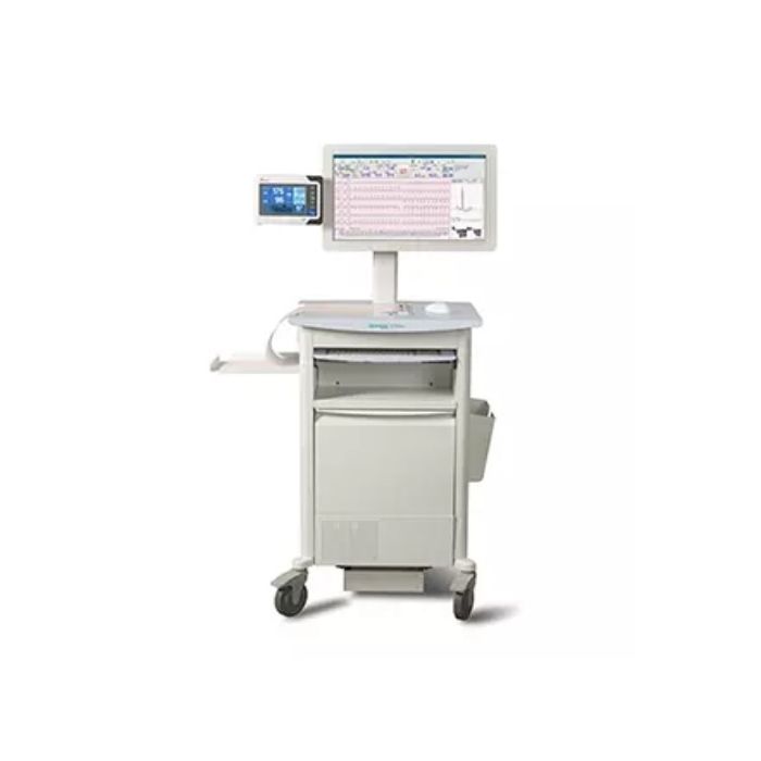 Q-Stress Cardiac Stress- version 6 with adult and pediatric interpretation; includes current software CD and user manual CD; AM12Q Wired Acquisition Module with Trigger Module for TTL/analog signal output; Turnkey system with configured CPU and ELO brand capacitive color touchscreen 24" monitor with 1920 x 1080 resolution; US/Canada power cord; Z200+ thermal printer, (includes 2 starter packs of full- grid paper - 8"), Q-Stress premium transport cart with base, keyboard tray, storage shelf, large storage drawer, and side storage pocket; AHA 10 wire, 12-lead lead set with 43" leadwires with pi