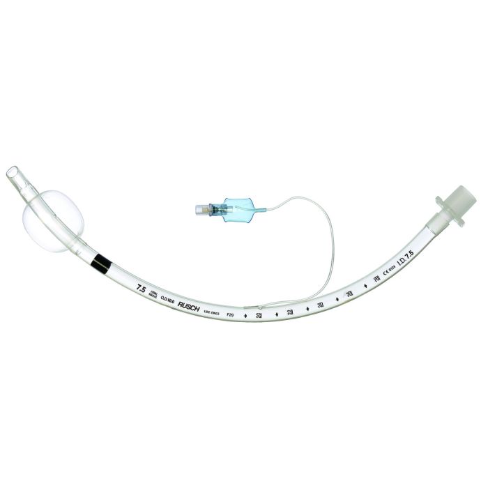 • Ruschelit™ PVC technology provides the right degree of stiffness, flexibility, and kink resistance • Features a high-volume, low pressure cuff • Distal tip is rounded and smooth to facilitate safe insertion • Wide black positioning ring above cuff provides a visual indication of when the tube has passed the vocal chords to aid in placement • Recommended for both oral and nasal intubation • For short or long term intubation • Single-use, sterile