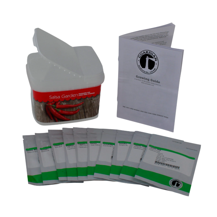 The Salsa Garden Preparedness Seeds plant a large salsa garden to spice up your food storage for years to come. These Seeds are Non-Hybrid, Non-GMO, and are not chemically treated. Because they are non-hybrid, seeds may be harvested at the end of the growing season and then used for the next year’s planting. Each of our seed varieties comes with a Quick Start Growing Guide.