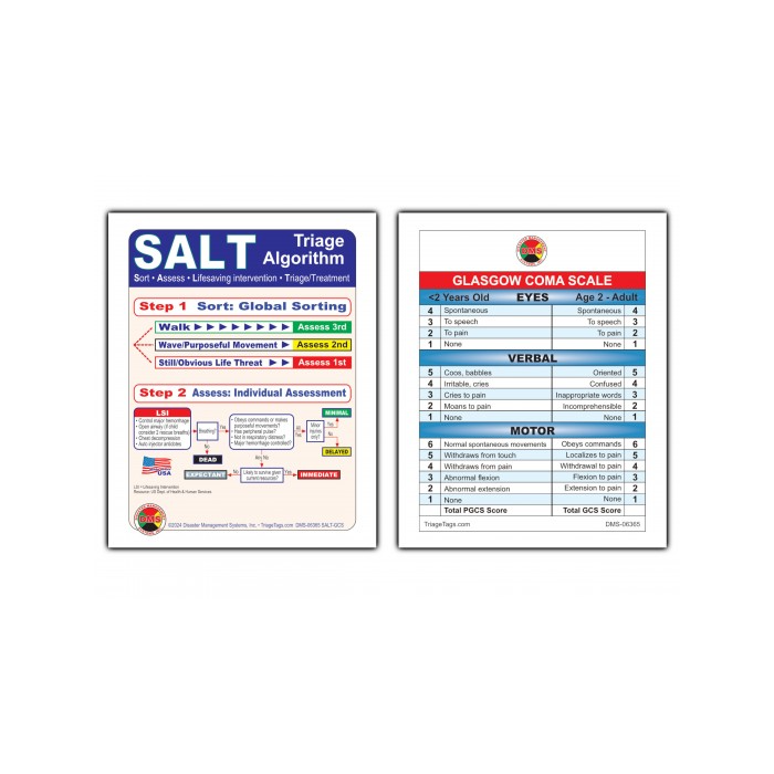 SALT Triage/Glasgow Coma Scale Cards (Pack of 10) 4" x 5"
