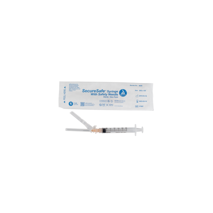 The Dynarex SecureSafe Syringes with Safety Needle are designed with a safety engineered mechanism to provide a comfortable, effective way to deliver medication or draw blood, while protecting the users from accidental needlesticks.