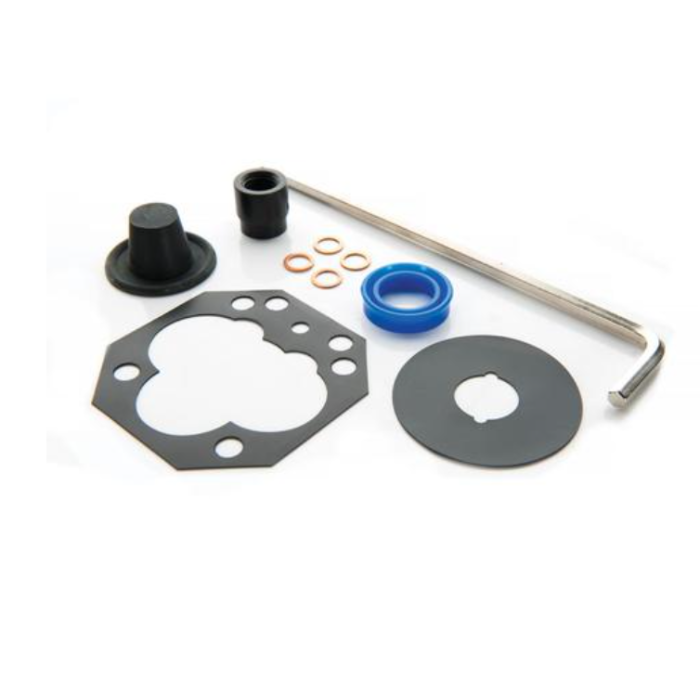 Set of spare seals for critical point apparatus (U104001). Includes a rubber cap seal, round rubber seal of diameter 60 mm, square rubber seal 78x78 mm², a sealing ring of diameter 30/20 mm, four copper sealing discs and a threaded bush made of POM (Polyoxymethylene.