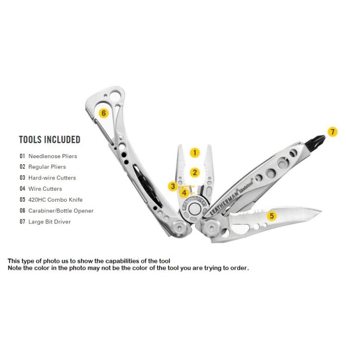 At a mere five ounces, the Leatherman Skeletool has a stainless steel combo blade, pliers, bit driver, removable pocket clip and carabiner/bottle opener. The Skeletool is just what you need in one good lookin' package.